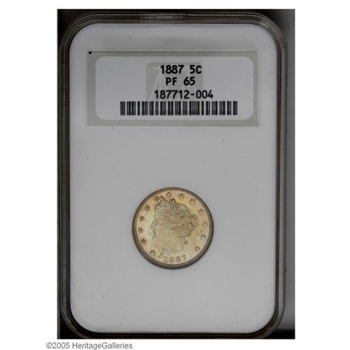 1887 5C PR65 NGC. A veneer of golden patina bathes imp 1887[5C] PR65 NGC.