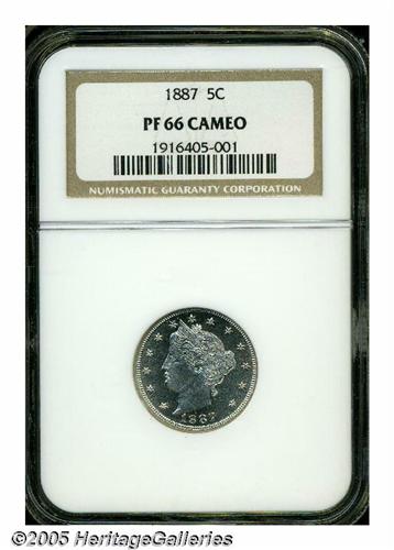 <B>1887<5C> PR66 Cameo NGC.</B></I> A premium Gem example with excellent contrast. A few lintmarks and a couple of strike-throughs are noted, but little has happened to this coin since it left the Mint.