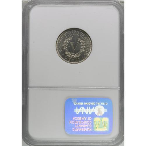 1887 5C PR66 NGC. Bright proof surfaces display a few