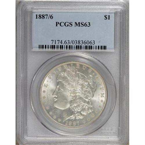 <B>1887/6 $1 MS63 PCGS.</B></I> PCGS Population (391/398). NGC Census: (259/301). Numismedia Wsl. Price for NGC/PCGS coin in MS63: $550. (#7174)<BR><BR><b>Shipping:</b> Coins & Currency (<a target="_blank" href="http://www.heritageauctions.com/common/shipping.php">view shipping information</a>)