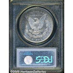 <B>1887/6<img border='0' src='http://www.heritagecoins.com/images/star.gif' width=10 height=10>$1 MS64 PCGS.</B></I> The curve of the base of an underdigit 6 is irrefutable. Sharply struck, with mostly brilliant surfaces visited by gunmetal-blue and purple toning on the left reverse.