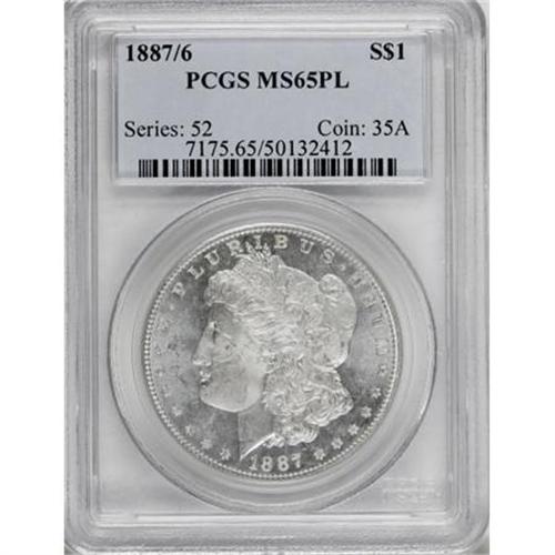 <B>1887/6 $1 MS65 Prooflike PCGS.</B></I> VAM-2. A Top 100 Variety. Seldom does a prooflike example of this issue come into the marketplace, especially in Gem quality. This one is fully brilliant with silvery-white surfaces and good contrast. The overdate features may be made out without the use of magnification.<BR><BR><B>Coin Engraver:</B> George T. Morgan<BR><BR><b>Shipping:</b> Coins & Currency (<a target="_blank" href="http://www.heritageauctions.com/common/shipping.php">view shipping information</a>)