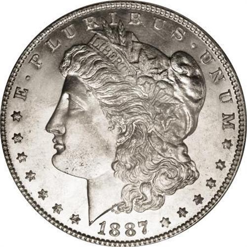 <B>1887/6 $1 MS66 NGC.</B></I> VAM-2, A Top 100 Variety. The overdate is readily visible as spurs extending out from either side of the 7. The 1887 Morgan dollar overdates are more avidly collected than their more common 1880 counterparts. Frosted surfaces extend from semiprooflike fields that are almost entirely white save for the slightest tints of gold and tan. Blessed with a sharp strike and seemingly kept from an even higher grade by a bit of contact near Liberty's chin. This coin is among the finest available, with no MS67 examples certified by either major service regardless of designation. Census: 5 in 66, 0 finer (12/07).<BR><BR><B>Coin Engraver:</B> George T. Morgan<BR><BR><b>Shipping:</b> Coins & Currency (<a target="_blank" href="http://www.heritageauctions.com/common/shipping.php">view shipping information</a>)