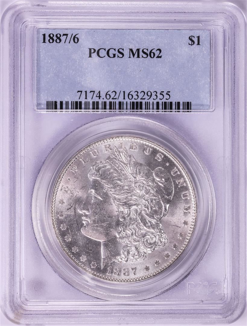 One 1887/6 $1 Morgan Silver Dollar Coin PCGS MS62. PCGS Graded.