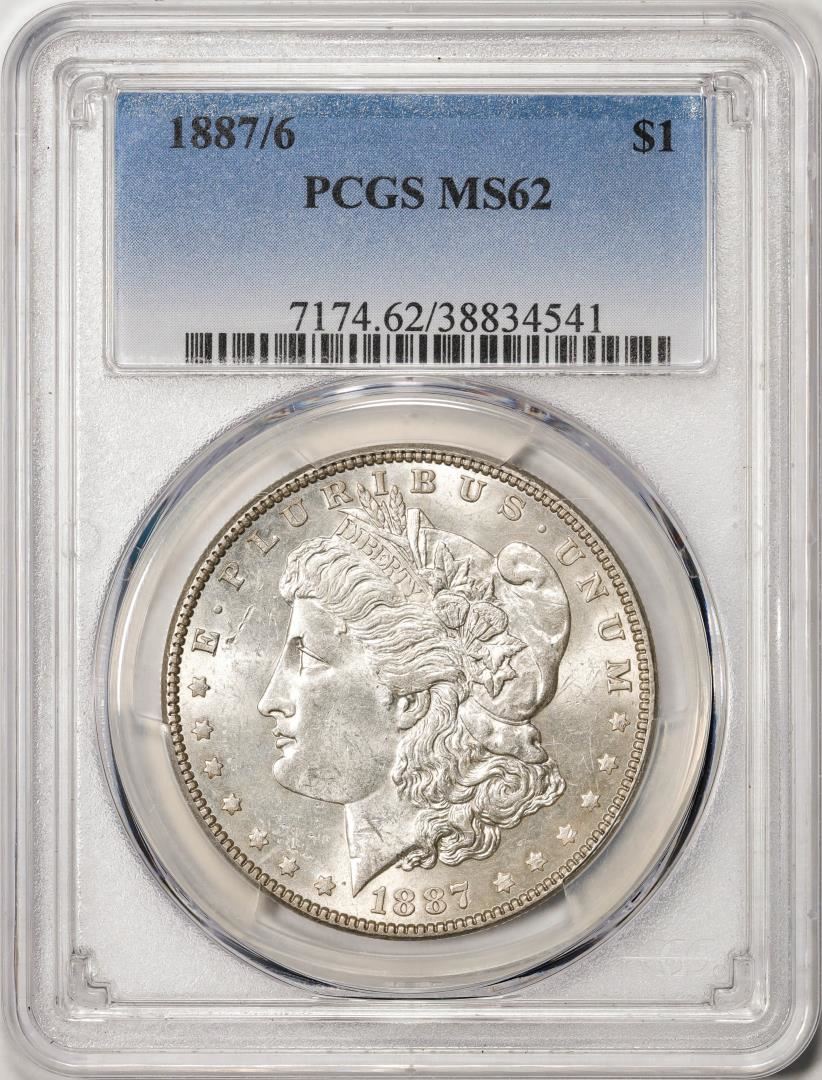 One 1887/6 $1 Morgan Silver Dollar Coin PCGS MS62. PCGS Graded.