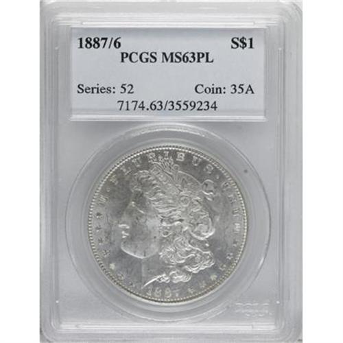 <B>1887/6 $1 MS63 Prooflike PCGS.</B></I> PCGS Population (391/398). NGC Census: (258/310). Numismedia Wsl. Price for NGC/PCGS coin in MS63: $550. (#7174)<BR><I>From The Diamond Head Collection.</B></I><BR><BR><B>Coin Engraver:</B> George T. Morgan<BR><BR><b>Shipping:</b> Coins & Currency (<a target="_blank" href="http://www.heritageauctions.com/common/shipping.php">view shipping information</a>\)