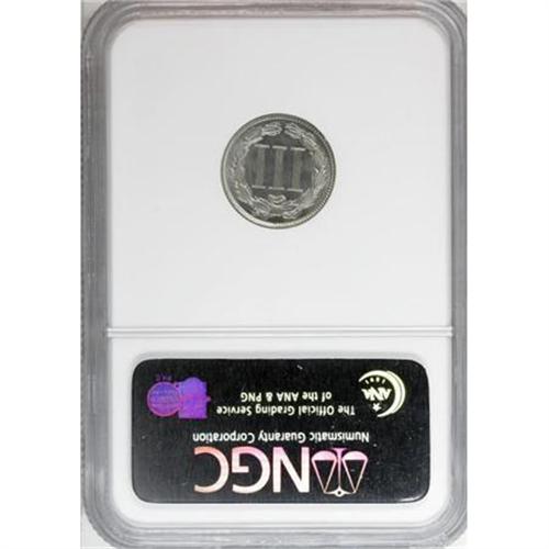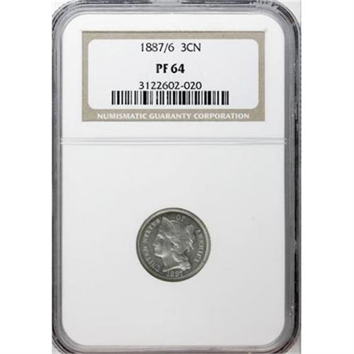 <B>1887/6 3CN PR64 NGC.</B></I> NGC Census: (104/220). PCGS Population (144/219). Mintage: 2,900. Numismedia Wsl. Price for NGC/PCGS coin in PR64: $475. (#3784)<BR><BR><B>Coin Engraver:</B> James B. Longacre<BR><BR><b>Shipping:</b> Coins & Currency (<a target="_blank" href="http://www.heritageauctions.com/common/shipping.php">view shipping information</a>)