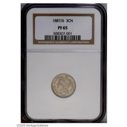 1887/6 3CN PR65 NGC. The overdate feature is clear wi 1887/6[3CN] PR65 NGC.