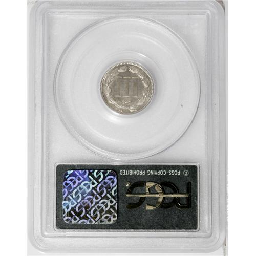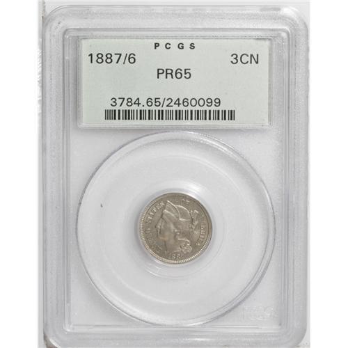 1887/6 3CN PR65 PCGS. The overdate is visible under ma