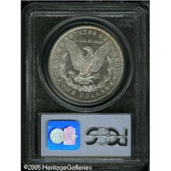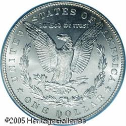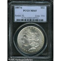 <B>1887/6<img border='0' src='http://www.heritagecoins.com/images/star.gif' width=10 height=10>$1 MS65 PCGS.</B></I> VAM-2. A Top 100 Variety. The base of an underdigit 6 is obvious on each side of the 7 in the date. A lustrous and impressively preserved Gem, nearly brilliant although glimpses of gold color make occasional visits. Conditionally rare as a Gem, and unobtainable any finer. Population: 51 in 65, 0 finer (1/05).<BR><I>From The Banks Collection.</B></I> Lot:10249