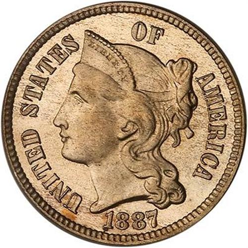 The careful treatment that the United States Mint usually takes in preparing Proof coins means that overdates are rare on such pieces. Just the same, the 1887/6 forms the majority of the 2,960 Proof Three-Cent Nickels delivered in 1887. This overdate is more accurately described as 1887/886 (per Breen, 1988), but only the earliest strikes show traces of all three underdigits. This gorgeous Cameo Gem is close to the top of the census. (#83784)