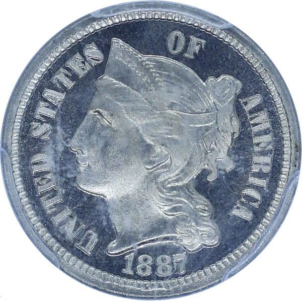 1887/6 Nickel Three Cents. PCGS graded Proof 66 Cameo. CAC PCGS # 83784
