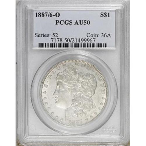 <B>1887/6-O $1 AU50 PCGS.</B></I> PCGS Population (5/785). NGC Census: (3/373). Numismedia Wsl. Price for NGC/PCGS coin in AU50: $152. (#7178)<BR><BR><B>Coin Engraver:</B> George T. Morgan<BR><BR><b>Shipping:</b> Coins & Currency (<a target="_blank" href="http://www.heritageauctions.com/common/shipping.php">view shipping information</a>)