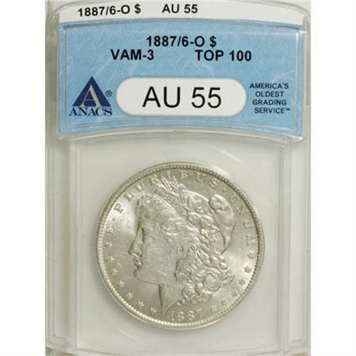 <B>1887/6-O $1 AU55 ANACS.</B></I> VAM-3, Top-100. NGC Census: (11/345). PCGS Population (16/739). Numismedia Wsl. Price for NGC/PCGS coin in AU55: $200. (#7178)<BR><BR><b>Shipping:</b> Coins & Currency (<a target="_blank" href="http://www.heritageauctions.com/common/shipping.php">view shipping information</a>)