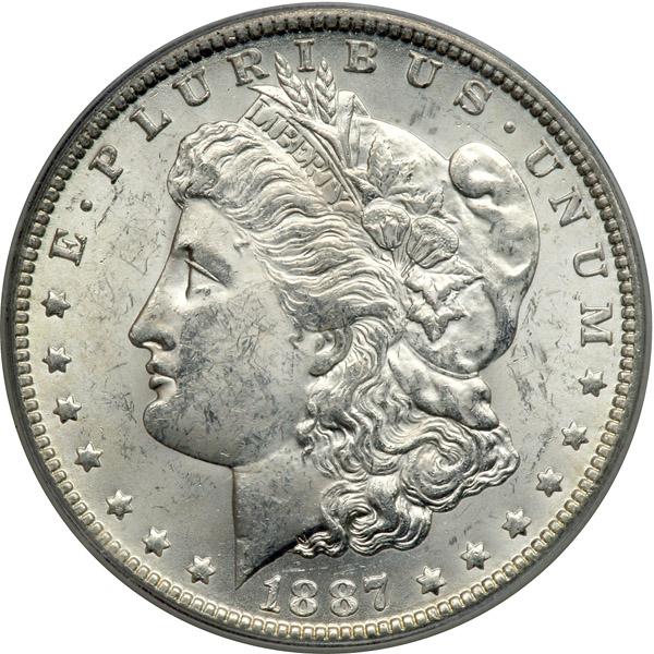 1887/6-O Morgan Dollar. PCGS graded MS-61. Housed in an Old Green Holder. Frosty and white (PCGS # 7178) .
