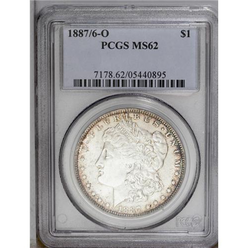 <B>1887/6-O<img border='0' src='http://www.heritagecoins.com/images/star.gif' width=10 height=10>$1> MS62 PCGS.</B></I> VAM-3. A Top 100 Variety. An issue that is scarce in all grades, here represented by a bright, satiny example with speckled russet and sea-green toning about the stars and lettering. The strike is above average for this widely collected overdate. <BR><BR><B>Important notice:</B> Heritage usually auctions material at the rate of 200-250 lots per hour. On some occasions eBay Live bid software or the Internet may not be able to keep up with the pace of the auction. We recommend placing a realistic absentee bid now as insurance to avoid disappointment. Occasionally the auctioneer may eliminate or reject an eBay Live bid, and the auctioneer may also reopen a lot after the close of the eBay live bidding (usually because we missed an audience bid), and may reject your bid even if it shows you as the winning bidder. By bidding via eBay Live, you agree that Heritage may award the lot to another bidder at its sole discretion under the circumstances described above or any other reasonable circumstances. Since eBay bids are not shown to us until we open the lot on the floor, we treat those bids just like floor bids. In most cases the floor responds before the eBay bid is presented to us, due to Internet lag time, so for consistency we have made it a policy that floor bids are always considered first over tie eBay live bids. Also please note that all Heritage lots purchased through eBay Live carry a 20% Buyer's Premium. Please make sure you read the Terms and Conditions before you bid. This lot is being auctioned in conjunction with a live floor auction by Heritage Galleries & Auctioneers. All final auction and invoice information will be supplied by Heritage Galleries & Auctioneers, and all other information should be considered preliminary. Lot:3479 <BR><BR><B>Winning Notification and Billing:</B> After the FINAL session in this auction is complete, Heritage will send e-mail and snail mail invoices. This process normally takes several days. All final auction and invoice information will be supplied by Heritage Galleries & Auctioneers, and all other information should be considered preliminary. <BR><BR>This auction will be conducted on a live auction floor and over the Internet through eBay Live. If you choose to place an absentee bid, please take a moment to <font color='#0000ff'><u><a href='http://pages.ebay.com/liveauctions/help/before/laabsentee.html'>learn how eBay Live absentee bidding works</a></u></font><font color='#000000'>