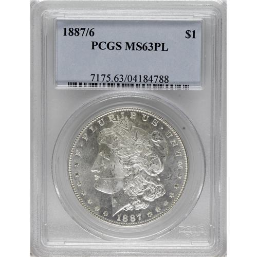 <B>1887/6 S$1 MS63 Prooflike PCGS.</B></I> VAM-2. A Top 100 Variety. This untoned representative has good reflectivity and a decent strike. A thin horizontal planchet streak near the mouth is of mint origin.<BR><BR><b>Shipping:</b> Coins & Currency (<a target="_blank" href="http://www.heritageauctions.com/common/shipping.php">view shipping information</a>)