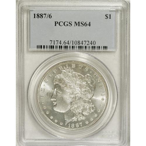 <B>1887/6 S$1 MS64 PCGS.</B></I> VAM-2. A Top 100 Variety. Dazzling cartwheel luster and well preserved surfaces confirm the exemplary quality of this precisely struck near-Gem. Faint autumn-gold toning visits the upper half of the reverse.<BR><BR><b>Shipping:</b> Coins & Currency (<a target="_blank" href="http://www.heritageauctions.com/common/shipping.php">view shipping information</a>)