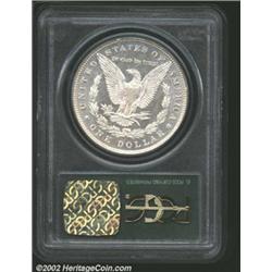1887/6 S$1 MS66 Prooflike PCGS. This overdate variety was created when the Engraving Department at the Philadelphia Mint partially resurfaced a few 1886-dated dies and punched a 7 over the 6. The variety was discovered by Ted Clark in November 1971, and, to date, enough Mint State coins have been confirmed to make the 1887/6 relatively easy to obtain in grades through the MS63 level. While Gems are rare, Prooflike coins are even rarer. Since such coins are created when working dies are polished, had those of the 1887/6 overdate been polished too much, the underdigit would have disappeared altogether. The present Gem, while possessed of shimmering, glassy fields beneath light silver-gray patina, still displays evidence of the underdigit to either side of the base of the 7. The devices are sharply defined, and the surfaces are remarkably free of coin-to-coin contact. A rare opportunity for the advanced Morgan Dollar specialist to acquire a truly rare example. Both major grading services report just two coins in MS66 Prooflike (both of which are at PCGS), and there are none finer (7/02). Important notice: We expect to be auctioning lots at the rate of 200-250 per hour. Sometimes eBay Premier live bid software cannot keep up with that pace, so we strongly recommend that you place a realistic proxy bid now as insurance to avoid disappointment. Also please note that all Heritage/CAA lots purchased through eBay Premier carry a 20% Buyer's Premium. Please make sure you read the Terms and Conditions.