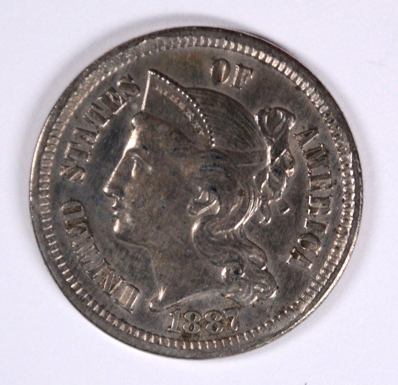 1887/6 THREE CENT NICKEL, PROOF, RARE, MINTAGE UNKNOWN ON OVERDATE