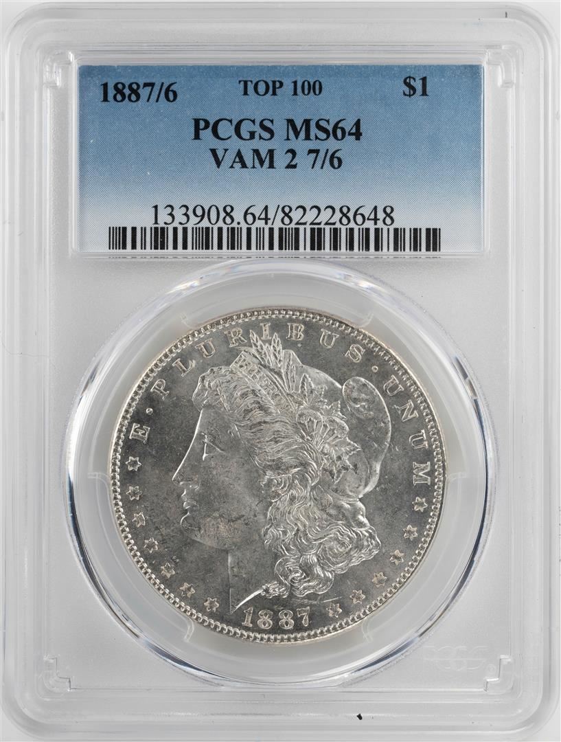 One 1887/6 Top 100 $1 Morgan Silver Dollar Coin PCGS MS64 VAM 2 7/6. PCGS Graded.