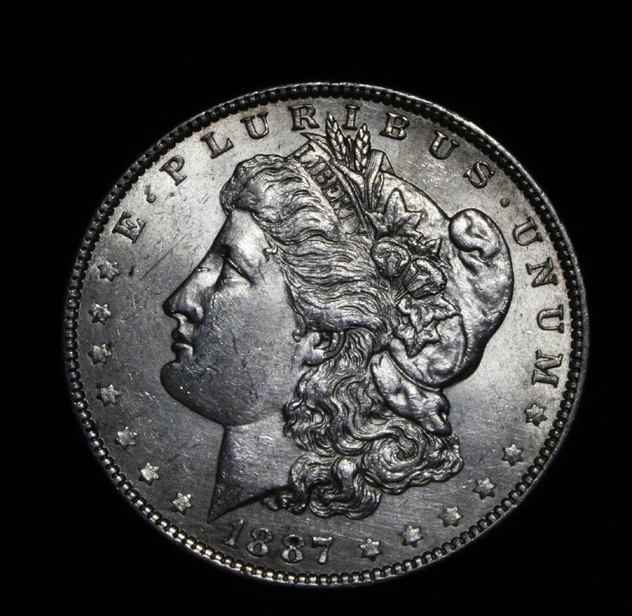 The rare 1887/6, this Morgan is considered a principal coin in a full Morgan Collection.  It has its own line and listing in the Greysheet, the red book, coin values and all other price guides.  It is the VAM 2  TOP 100 Variety with an Interest level of 5 out of 5, WOW! This is a nice example, white, god luster and well defined 6 under the 7.  Coin World's Coin Values lists ms63 at $700 and The Wholesale Greysheet lists ms 63 at $440.  Estimated Value $500