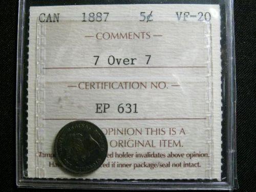 1887 7 over 7 5¢ ICCS VF20. Popular variety. Toned.
