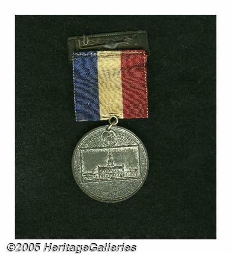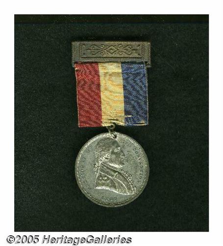 <B>1887 Adoption of the Constitution Medal PR60 Uncertified.</B></I> Baker-1810. White Metal. 35 mm. Dies by George T. Morgan. Holed for suspension, a wire bar is intended to hang from the now somewhat tattered ribbon (also included).