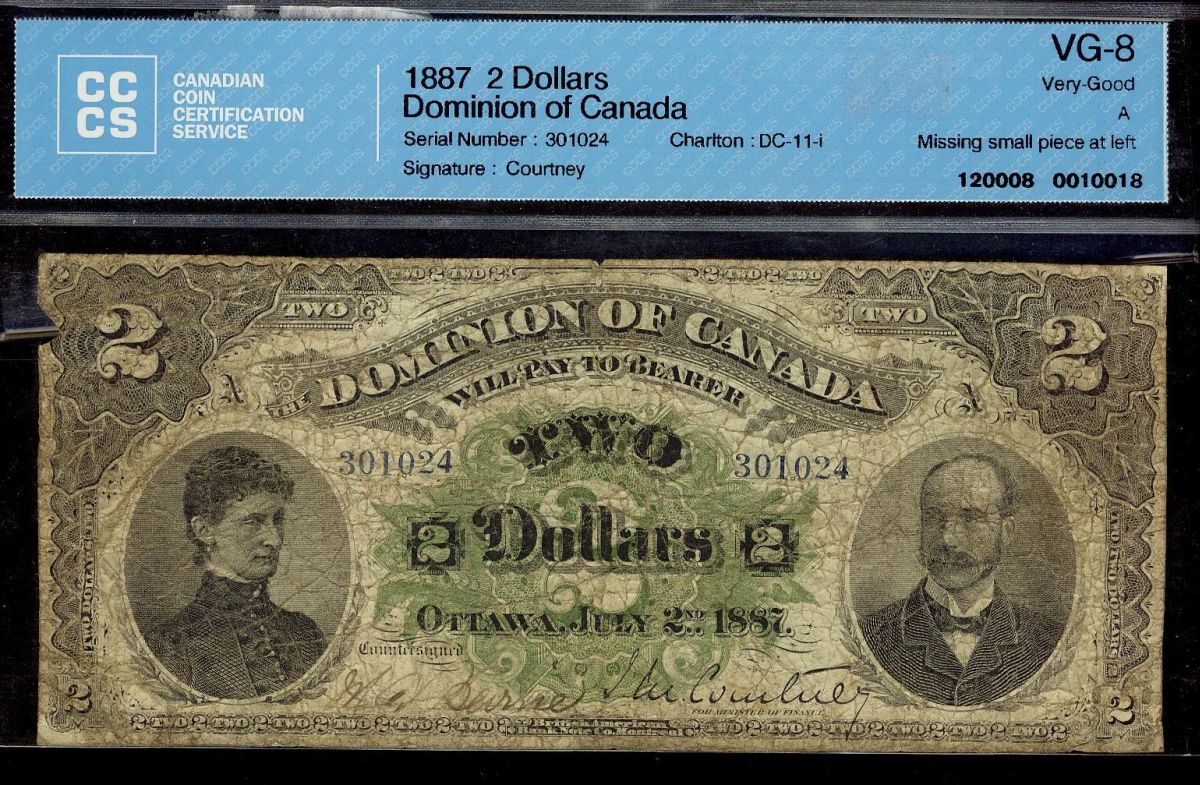 1887 DC-11 $2 S/N 301024 CCCS VG-8 (Tiny piece missing at upper left margin)