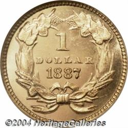 <table><tr><td><table><tr><td>1887 G$1 MS66 Prooflike NGC. An impressively mirrored premium Gem that has a seemingly full strike. A well preserved and attractive representative of this low mintage issue. A mere 7,500 pieces were struck, although some high grade examples were set aside as souvenirs by contemporary numismatists. The dies are moderately rotated counterclockwise. LIBERTY is faintly die clashed (as made) near the date. Population: 38 in 66, 12 finer (4/04). <BR><BR><B>Important notice:</B> Heritage usually auctions material at the rate of 200-250 lots per hour. On some occasions eBay Live bid software or the Internet may not be able to keep up with the pace of the auction. We recommend placing a realistic absentee bid now as insurance to avoid disappointment. Occasionally the auctioneer may eliminate or reject an eBay Live bid, and the auctioneer may also reopen a lot after the close of the eBay live bidding (usually because we missed an audience bid), and may reject your bid even if it shows you as the winning bidder. By bidding via eBay Live, you agree that Heritage may award the lot to another bidder at its sole discretion under the circumstances described above or any other reasonable circumstances. Since eBay bids are not shown to us until we open the lot on the floor, we treat those bids just like floor bids. In most cases the floor responds before the eBay bid is presented to us, due to Internet lag time, so for consistency we have made it a policy that floor bids are always considered first over tie eBay live bids. Also please note that all Heritage lots purchased through eBay Live carry a 20% Buyer's Premium. Please make sure you read the Terms and Conditions before you bid. <BR><BR><B>IMPORTANT ANNOUNCEMENT ABOUT RESERVES:</B> Heritage now divulges all reserves on its web site 7 days before every auction. If you want to know whether the reserve on this lot has been met, and if not, what the reserve amount is, please visit this lot page on the HeritageCoin.com web site, or email: bid@HeritageGalleries.com </span></font></td></tr></table></td></tr></table>