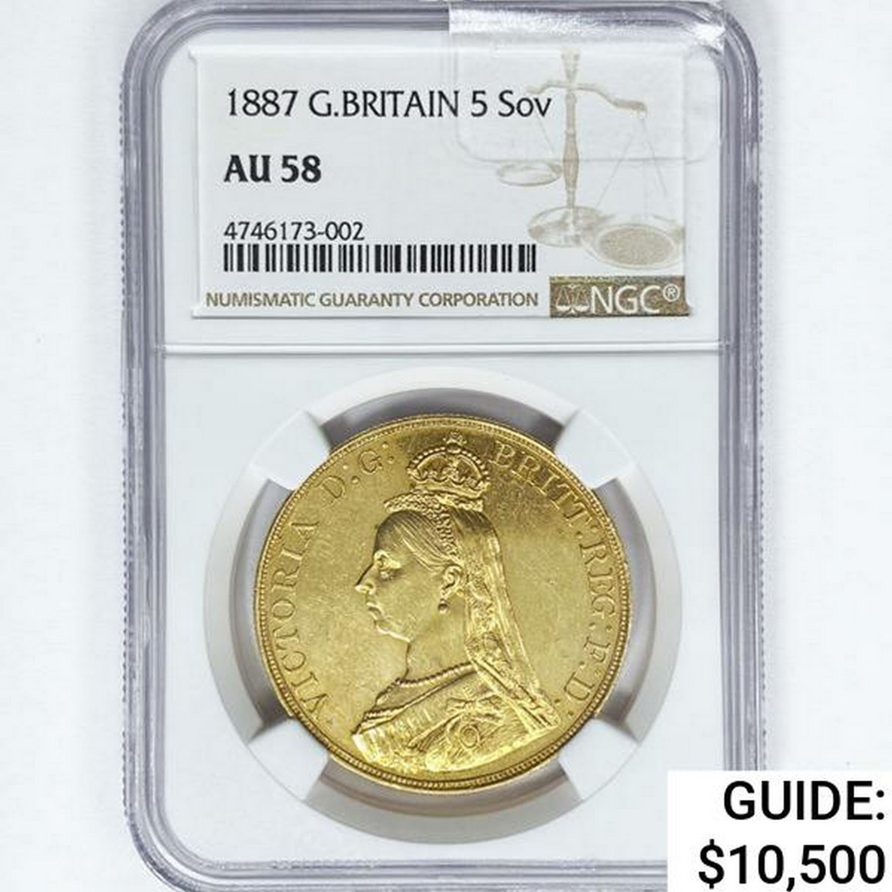 1887 G. Britain 1.1775oz Gold 5 Sovereign NGC AU58