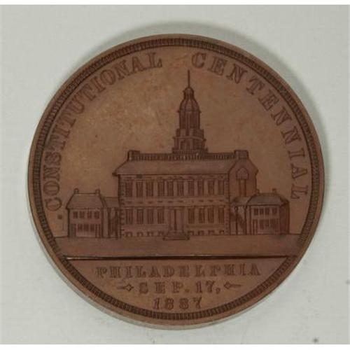 <B>1887 George Washington Constitution Convention Centennial Medal.</B></I> Baker-1800, bronze, plain edge, 37 mm. Excellent portrait detail against chocolate-brown surfaces. Attractively preserved and a noteworthy example of this centenary issue.<BR><BR><b>Shipping:</b> Coins & Currency (<a target="_blank" href="http://www.heritageauctions.com/common/shipping.php">view shipping information</a>)