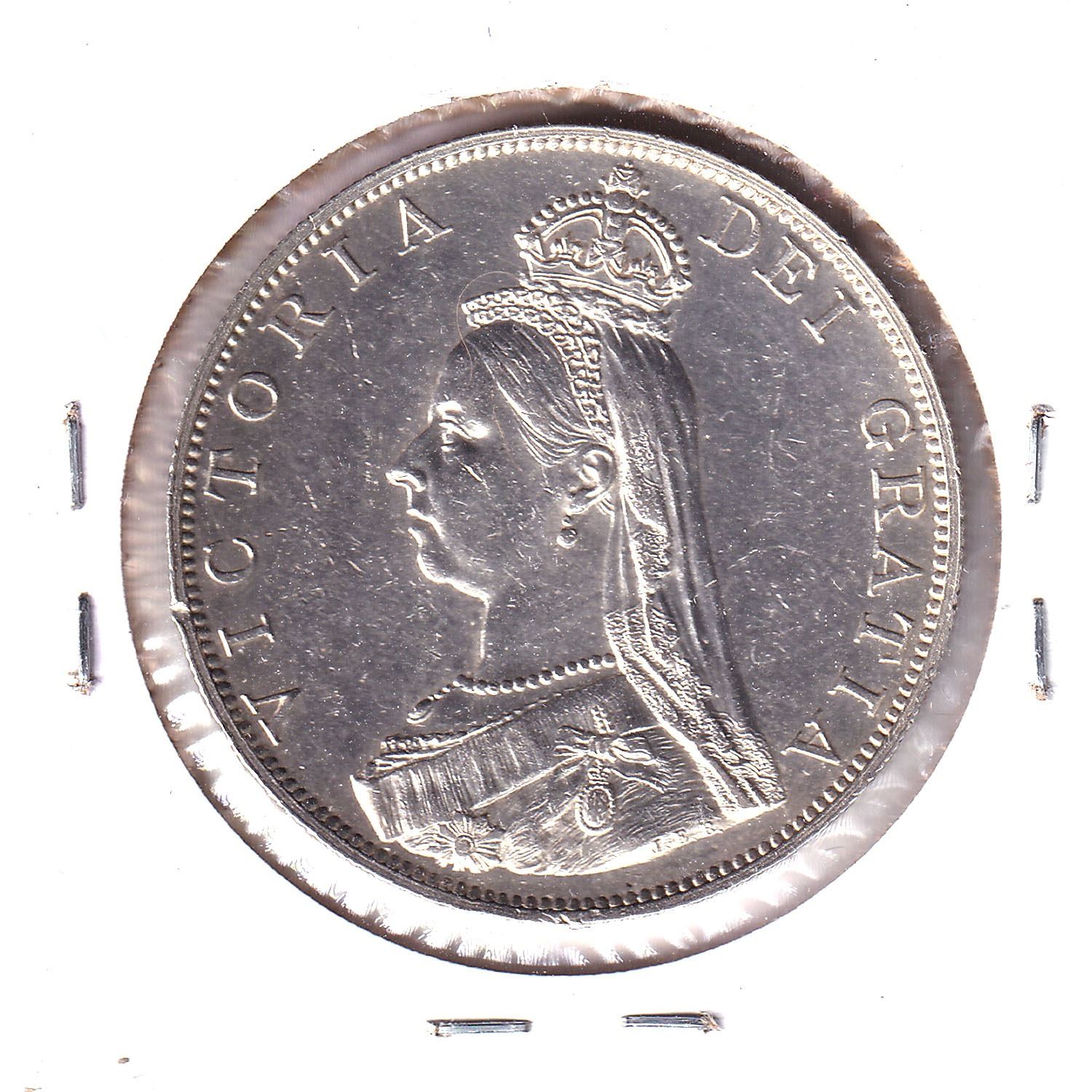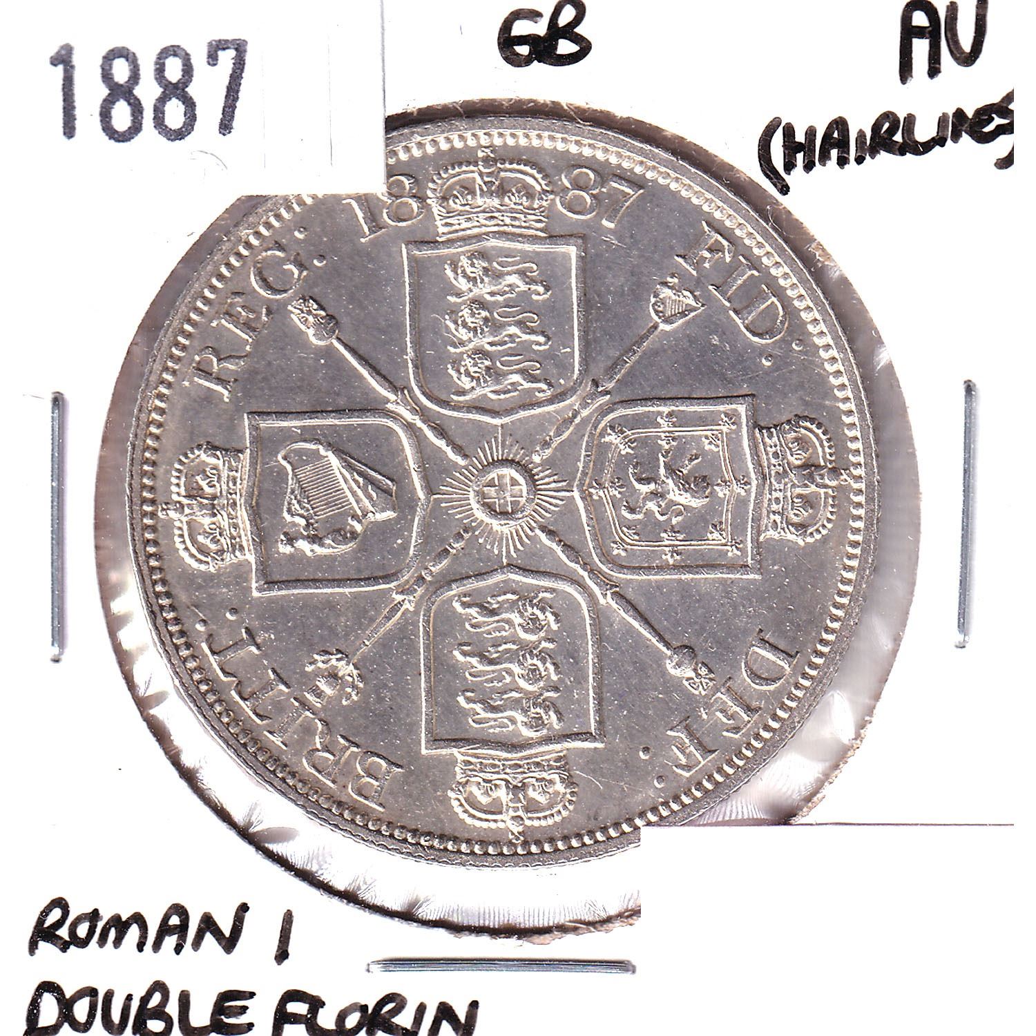 1887 Great Britain Roman I Double Florin Almost Uncirculated (Hairlines).