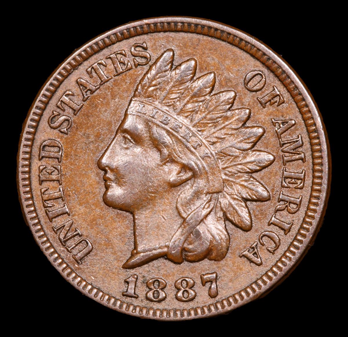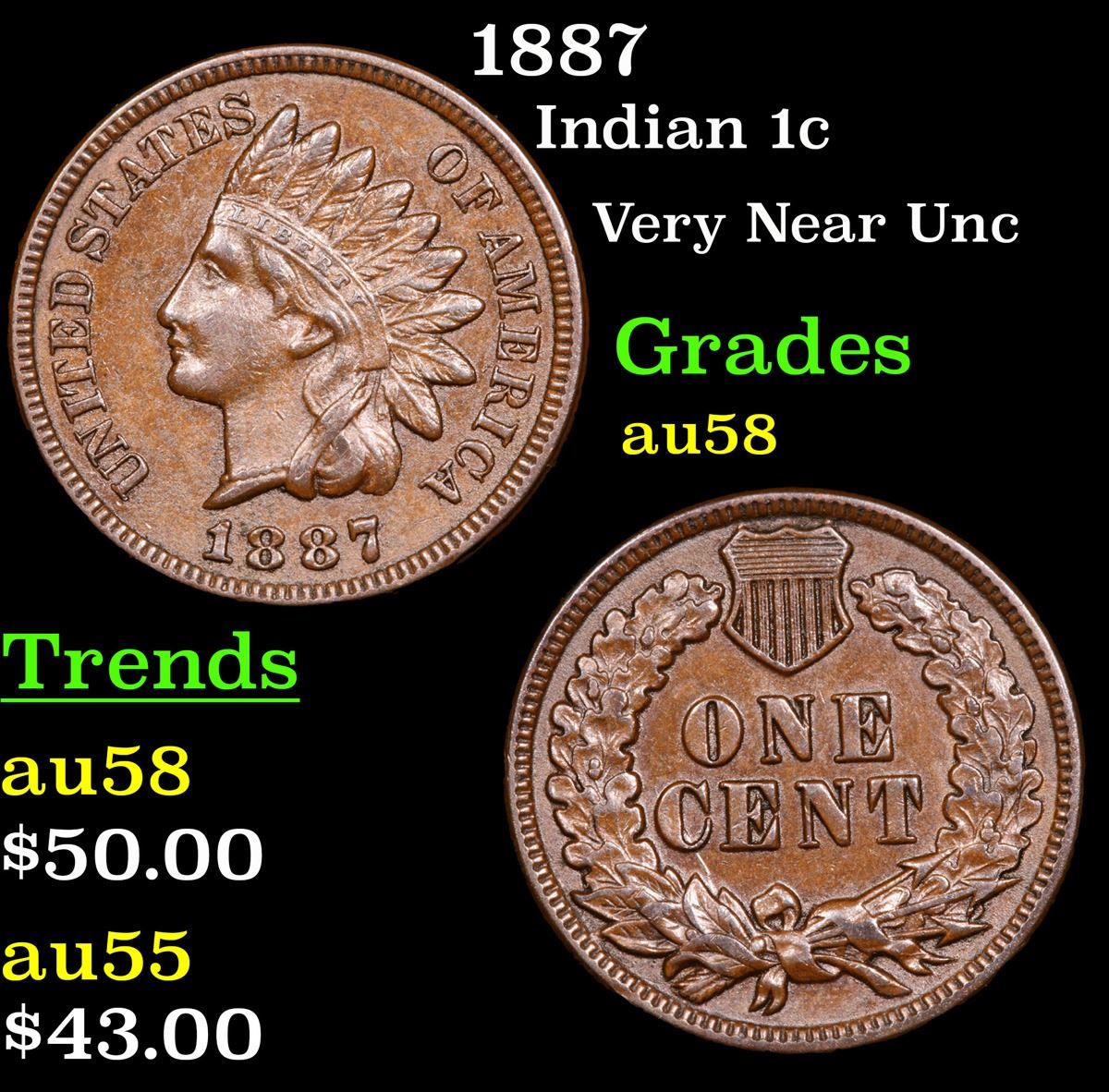 1887 . Very Near Unc Indian Cent 1c Grades Choice AU/BU Slider.
