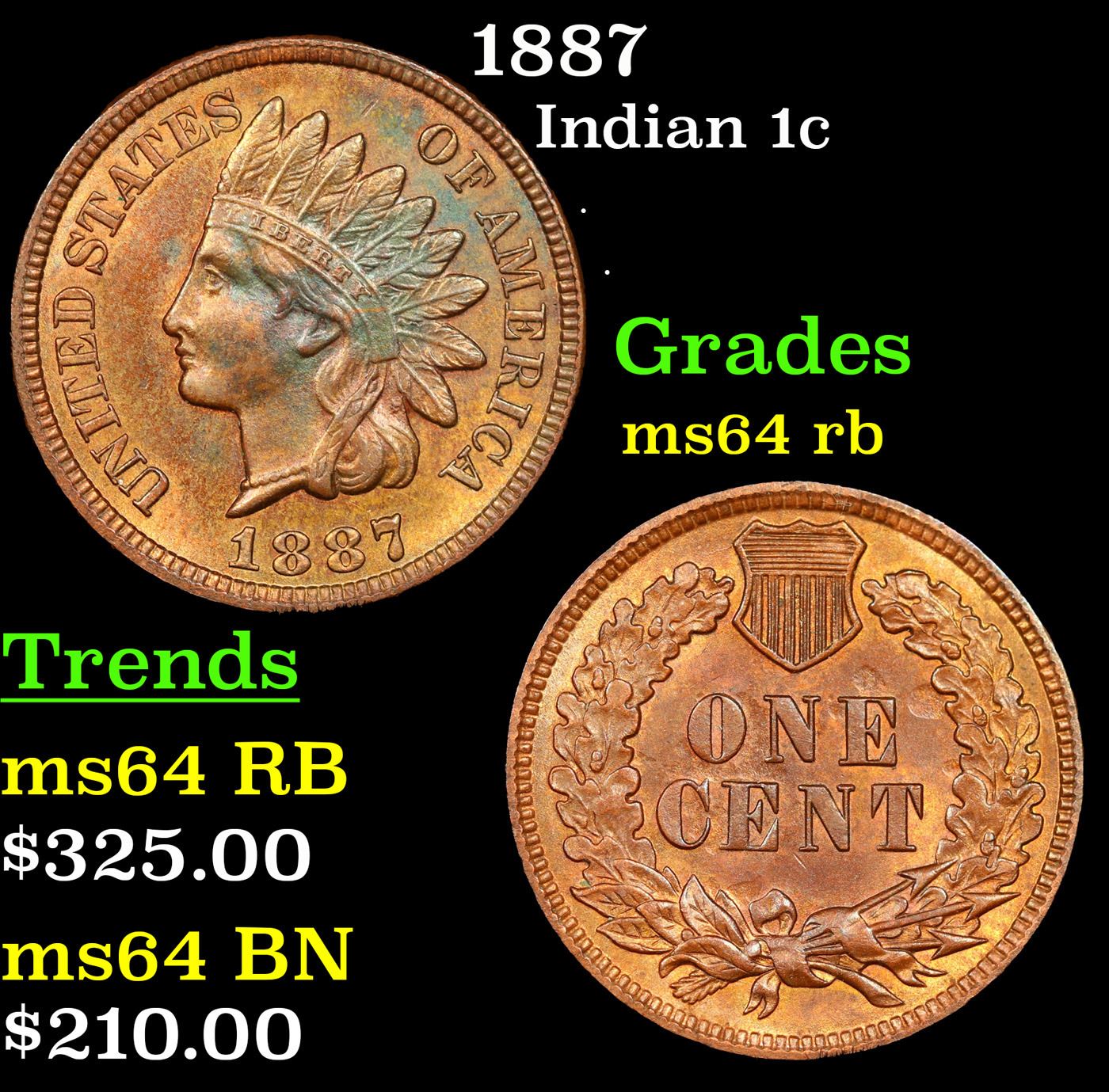 1887 Indian Cent 1c Grades Choice Unc RB.