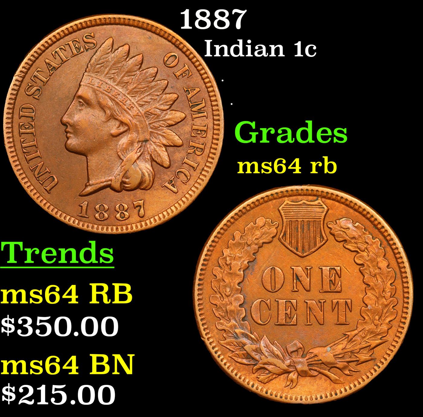1887 Indian Cent 1c Grades Choice Unc RB.