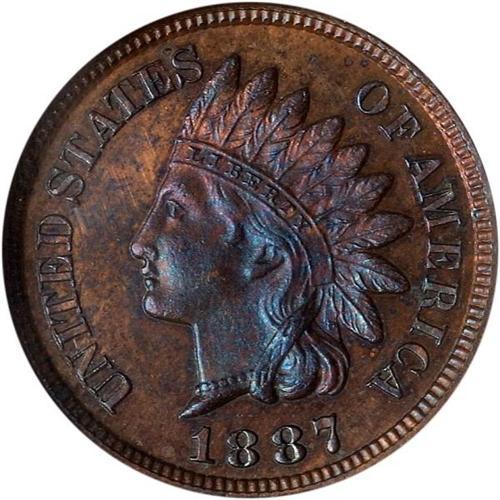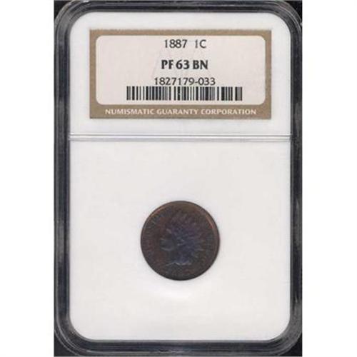 <b>1887 Indian Head Cent. NGC graded PF63 BR.</b> Attractive deep purple to blue-brown surfaces on this choice example; only a few light hairlines noted in the field <b>(PCGS # 2348)</b>