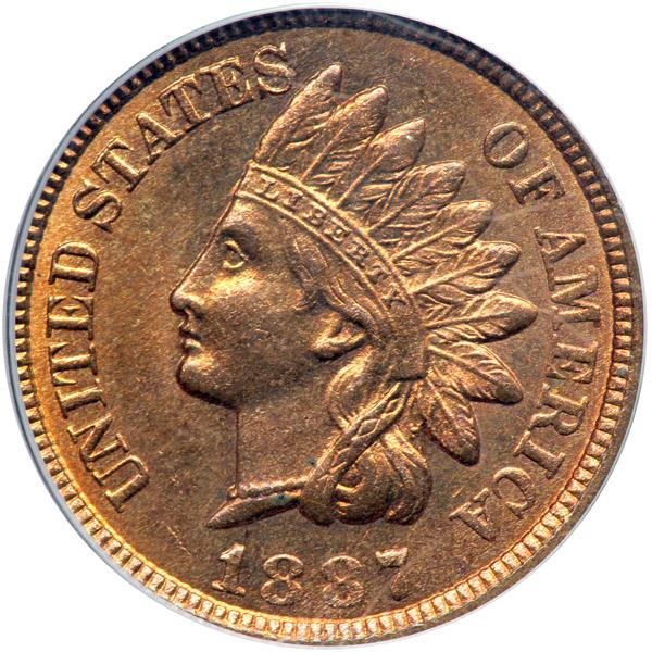1887 Indian Head Cent. PCGS graded MS-64 Red. Pop 84; 71 finer (PCGS # 2159) .