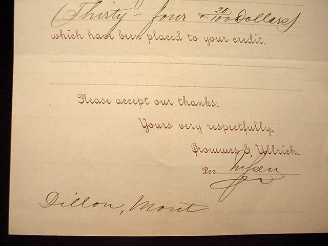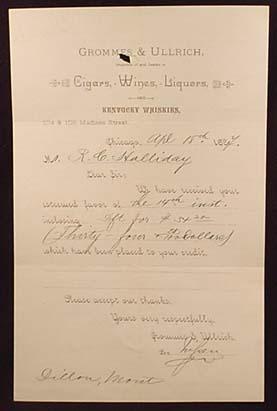 1887 LETTER TO DILLON, MT ON GROMMES ULLRICH WHISKEY LETTERHEAD