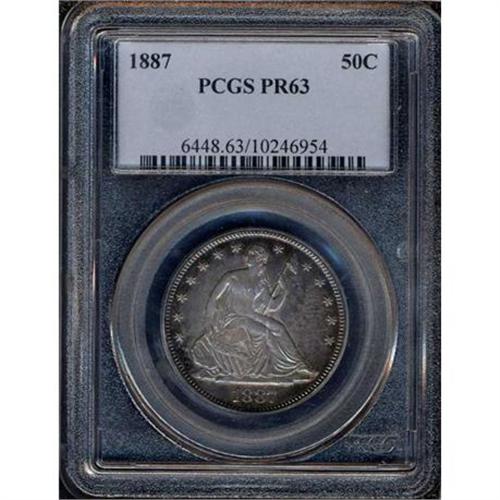 <b>1887 Liberty Seated Half Dollar. PCGS graded Proof 63.</b> Exceedingly choice for the issue, the strike almost 100% sharp while the surface is naturally toned from being housed in an album for years <b>(PCGS # 6448)</b> <i>