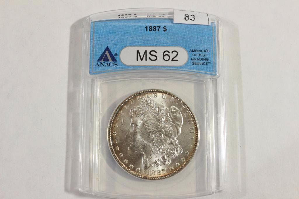 1887 MORGAN SILVER DOLLAR ANACS MS62