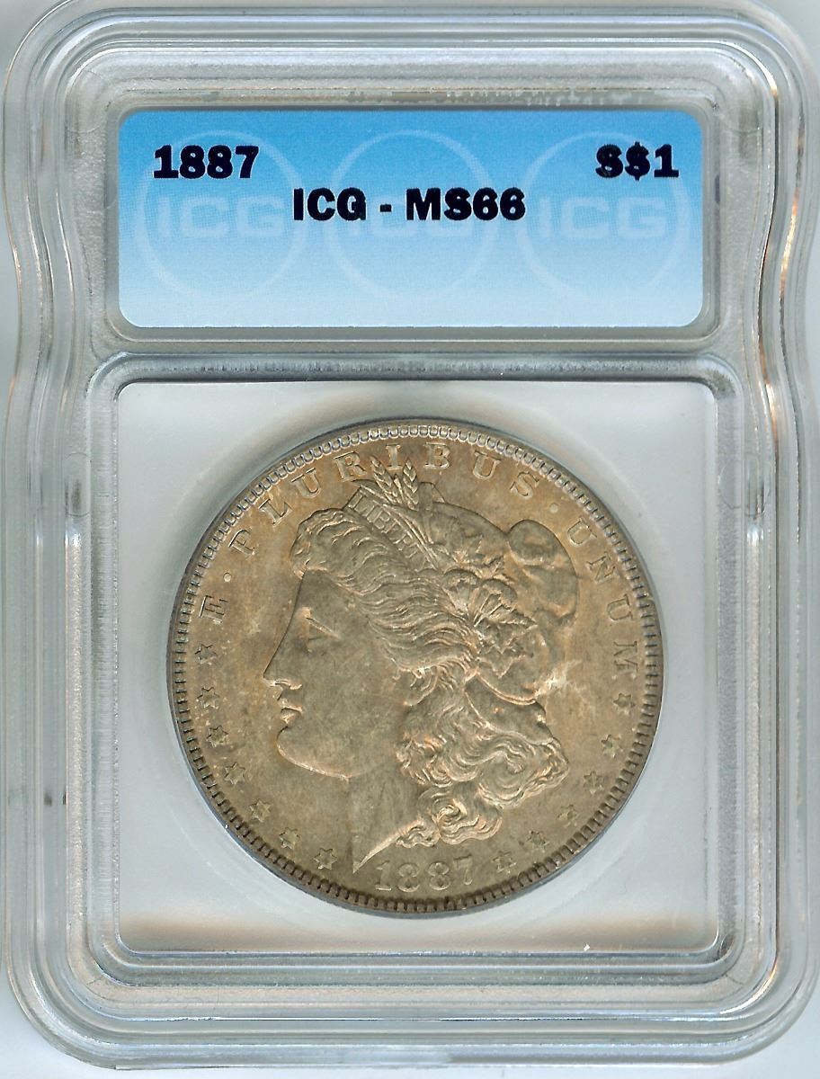1887 MORGAN SILVER DOLLAR ICG MS66 NICELY TONED!