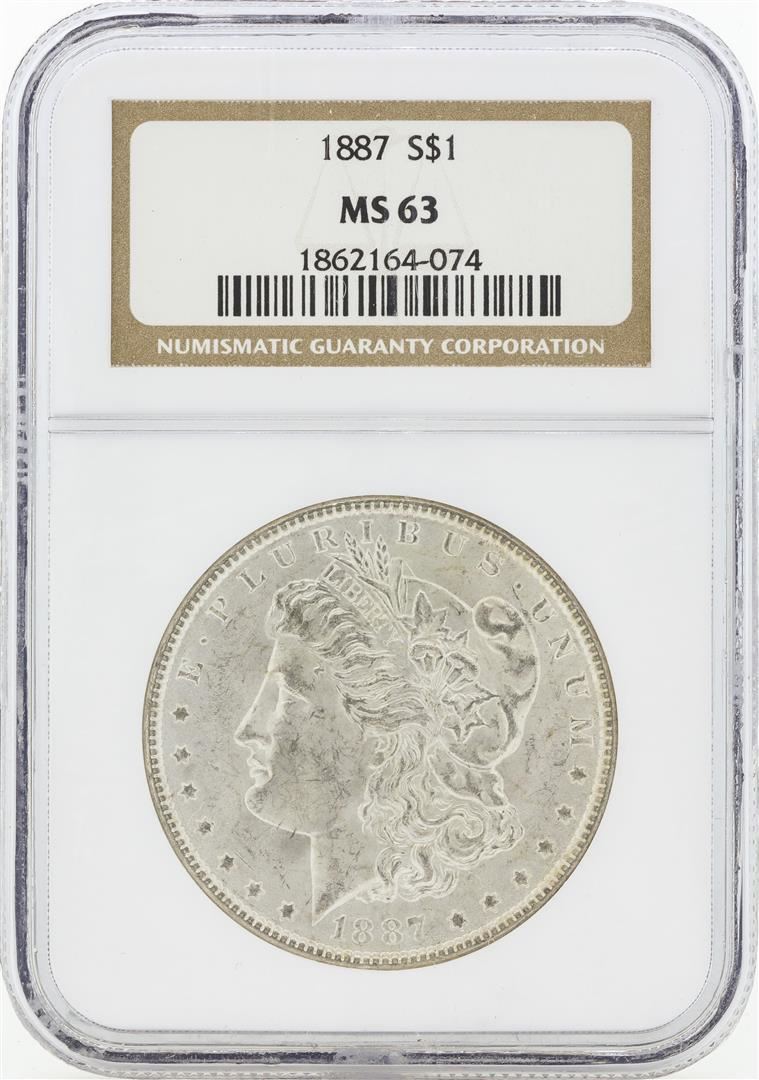 One 1887 MS63 NGC Morgan Silver Dollar NGC Certified.