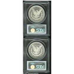 <B>1887<img border='0' src='http://www.heritagecoins.com/images/star.gif' width=10 height=10>$1 MS64 Deep Mirror Prooflike PCGS;</B></I> and an <B>1896 MS64 Deep Mirror Prooflike PCGS,</B></I> both coins are essentially untoned and display well struck design elements. 2 Coins Lot:10246