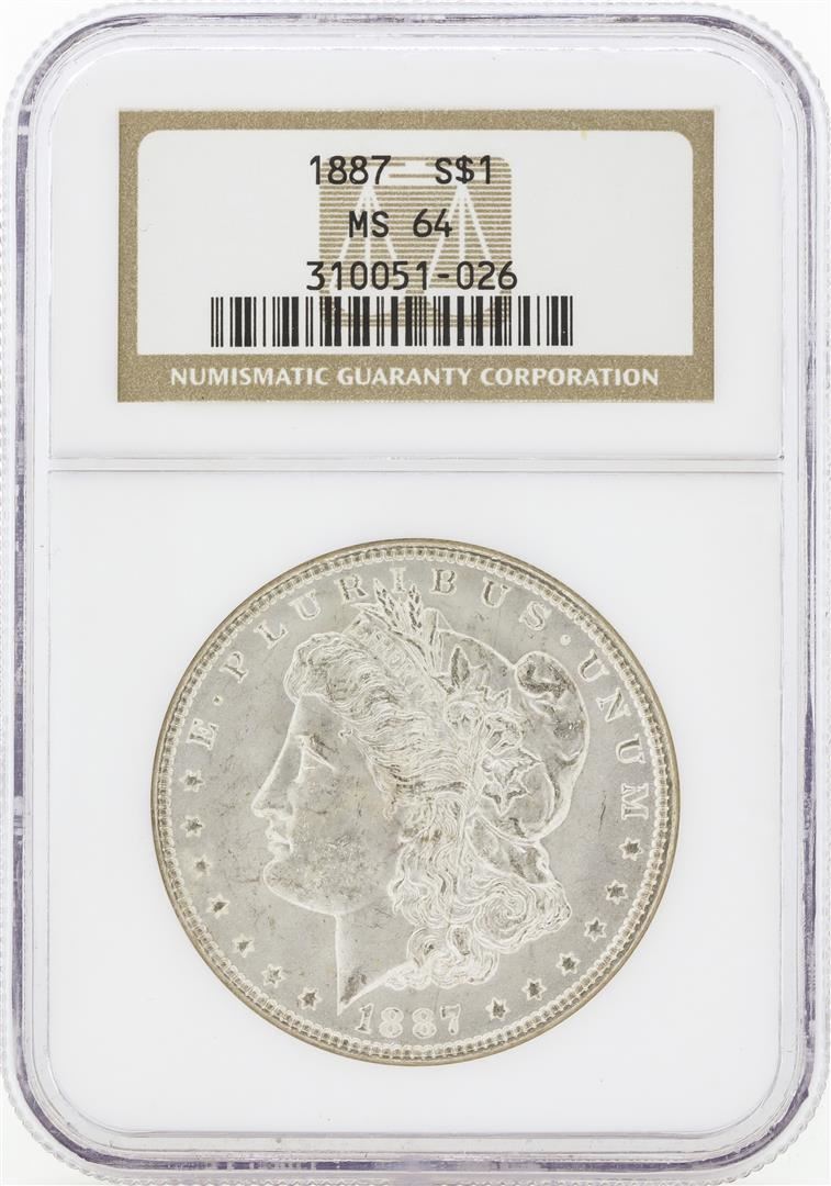 One 1887 MS64 NGC Morgan Silver Dollar NGC Certified.