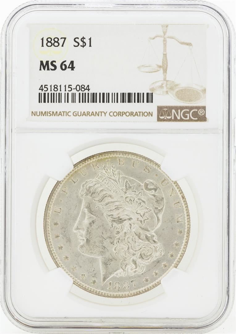 One 1887 MS64 NGC Morgan Silver Dollar NGC Certified.