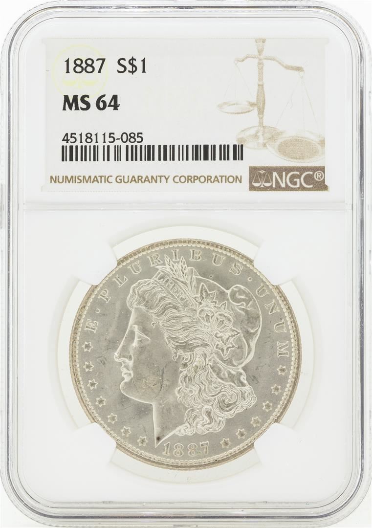 One 1887 MS64 NGC Morgan Silver Dollar NGC Certified.
