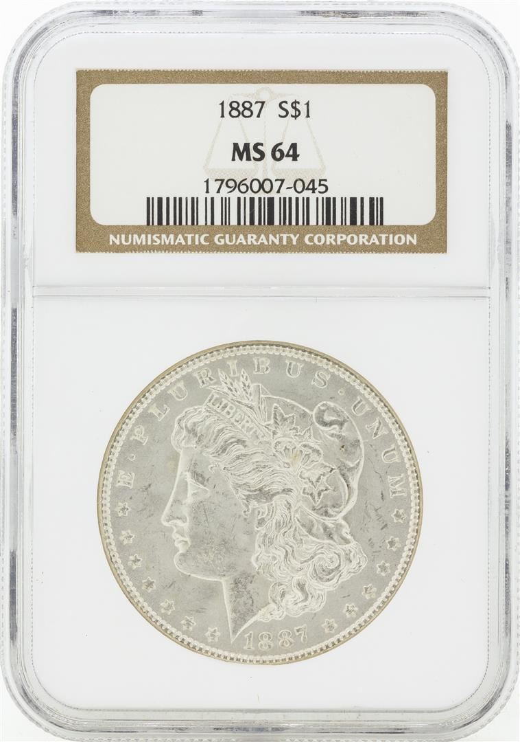 One 1887 MS64 NGC Morgan Silver Dollar NGC Certified.