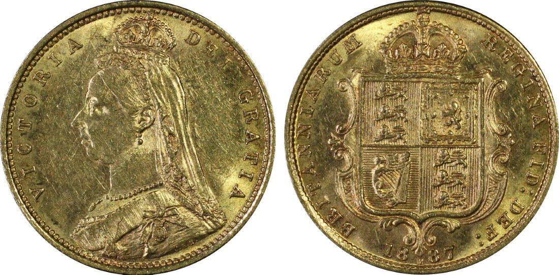 1887 Melbourne Mint QV Shield Half Sovereign PCGS AU 58