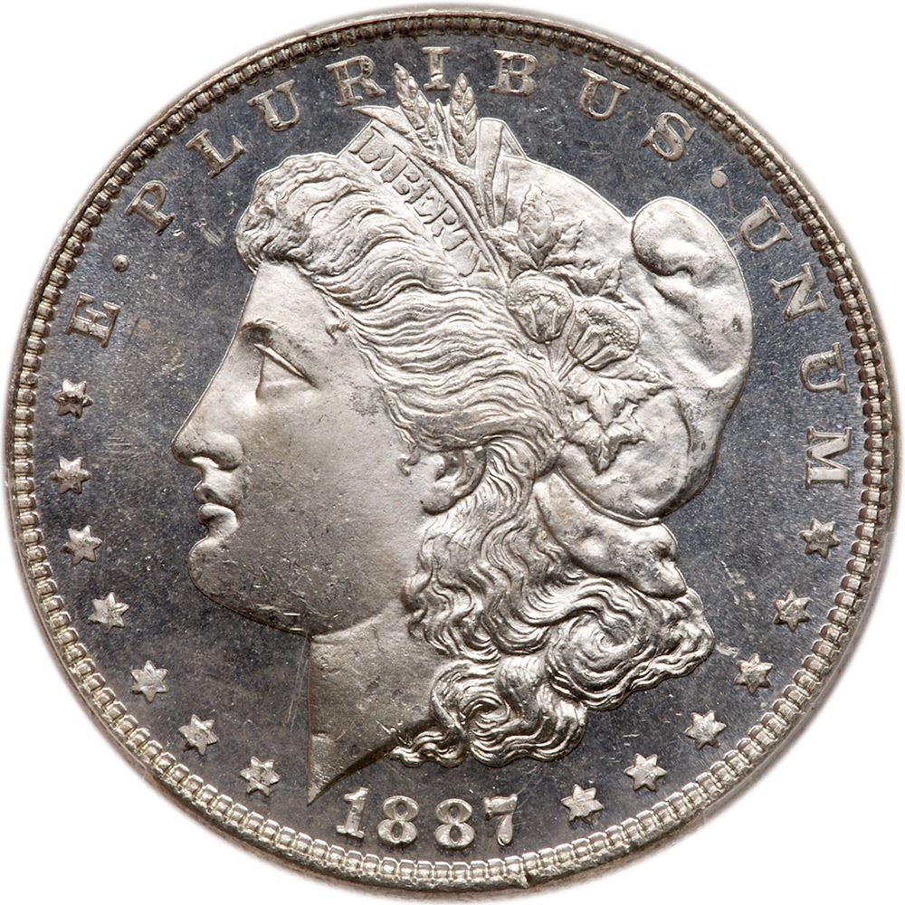 1887. PCGS graded MS-66 Deep Mirror Prooflike. Fully white and blazing mirror surfaces and this is tied with a select group as one of the finest seen with the Deep Mirror designation. A blazer that will add pizzazz to any specialists collection. Pop 41; 1 finer in 66+ for DMPL. PCGS # 97173 Estimated Value 2,200 - 2,300